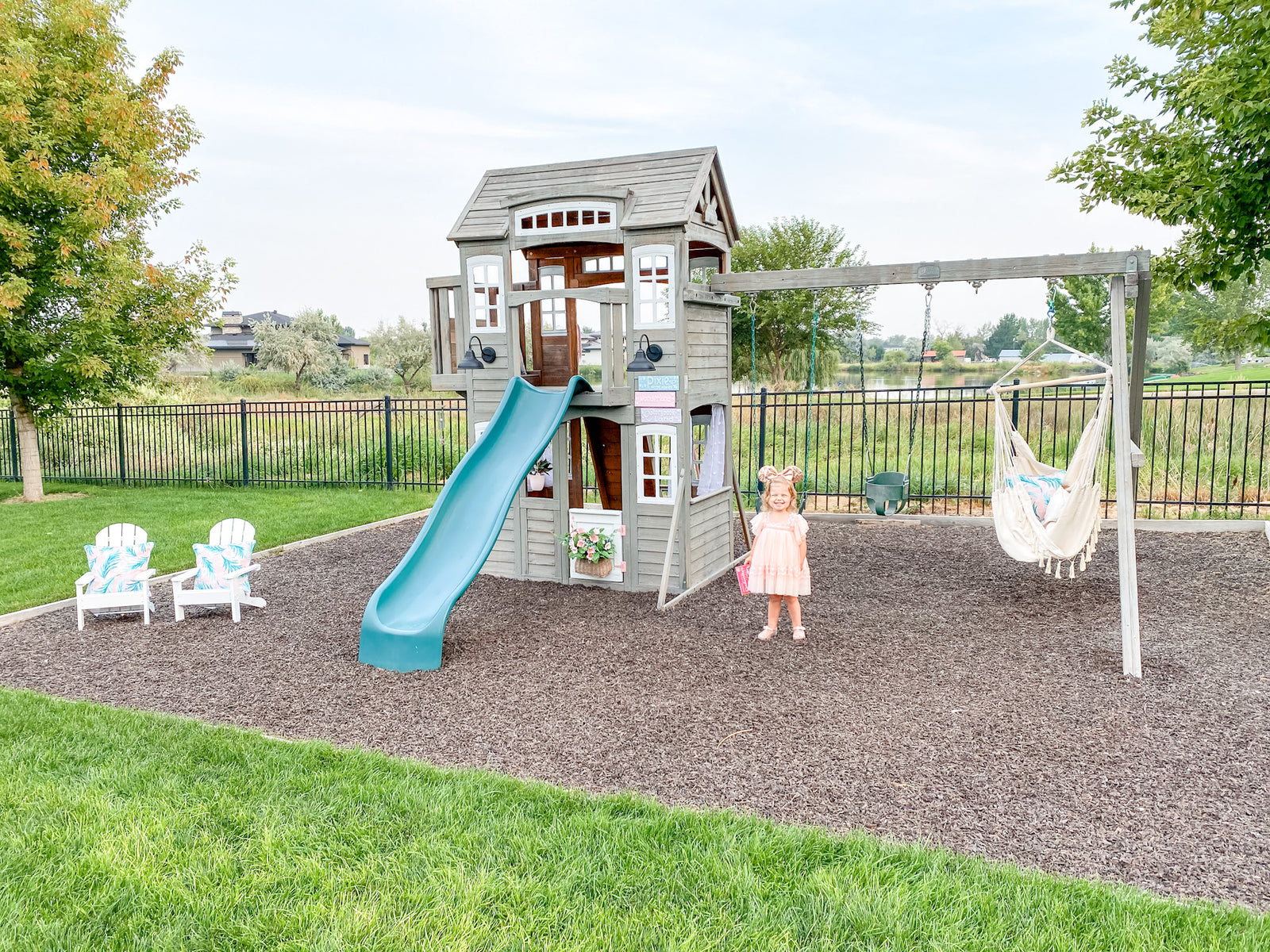 Throw in the comfiest hammock chair and two Adirondack chairs and my children can't wait to be outside!